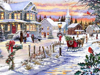 bells on the reindeer harness twinkle, Santa’s sleigh lights blink,